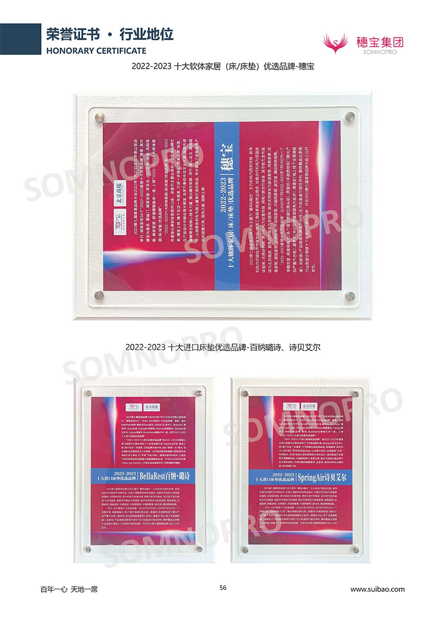 自1971年獨(dú)立研發(fā)生產(chǎn)出專屬國(guó)人的彈簧床墊,穗寶關(guān)于優(yōu)質(zhì)深度睡眠的研究已有半個(gè)世紀(jì)的歷史。穗寶一直專注床墊,專注中國(guó)消費(fèi)者的睡眠研究,針對(duì)中國(guó)人特點(diǎn)進(jìn)行優(yōu)化創(chuàng)新,不斷提升國(guó)人的睡眠體驗(yàn),只為成就每個(gè)晚上8小時(shí)的優(yōu)質(zhì)深度睡眠。憑借不斷革新的研發(fā)科技和深受消費(fèi)者信賴的產(chǎn)品品質(zhì),穗寶集團(tuán)旗下品牌和產(chǎn)品屢獲國(guó)內(nèi)外大獎(jiǎng),連續(xù)20年榮膺中國(guó)500最具價(jià)值品牌,品牌價(jià)值高達(dá)302.89億元。