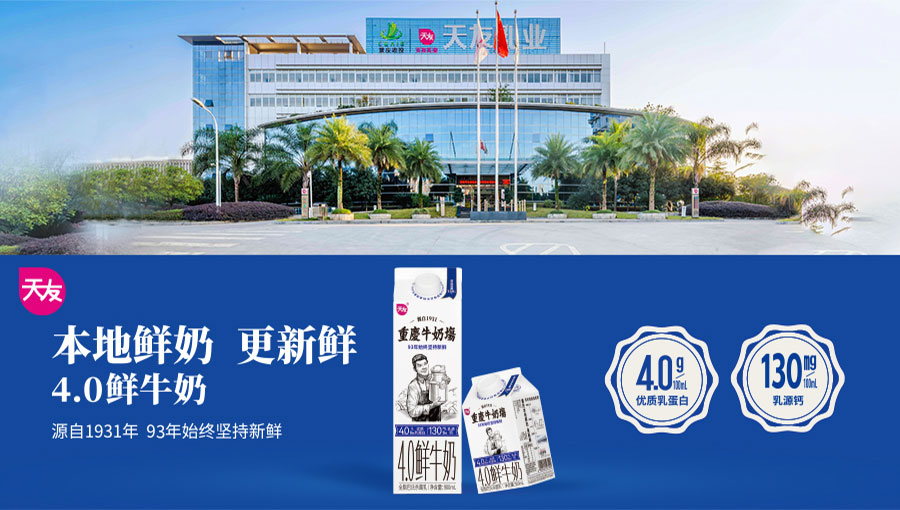 重慶市天友乳業(yè)股份有限公司始創(chuàng)于1931年,是一家具有94年歷史的專業(yè)乳制品全產(chǎn)業(yè)鏈企業(yè)。一直以成為“百年天友”為目標(biāo),始終以“成為最值得消費(fèi)者喜愛的乳品領(lǐng)軍企業(yè)”為愿景。