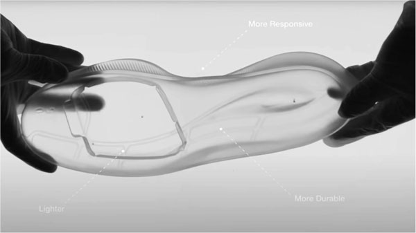 “氮?dú)獬R界物理發(fā)泡、一體成型,讓運(yùn)動(dòng)選手上場(chǎng)就能爆出好料”——這是安踏氮科技帶來(lái)的直觀表現(xiàn)!現(xiàn)場(chǎng),安踏品牌鞋創(chuàng)新管理中心高級(jí)總監(jiān)蔡之本解讀了“動(dòng)創(chuàng)未來(lái)”這一主題,同時(shí)他還列舉了一組數(shù)據(jù)——氮科技加持下的材料實(shí)現(xiàn)能量回歸率高達(dá)86.8%,材料密度僅為0.09g/cm³,耐久性方面提升30%,綜合性能表現(xiàn)遠(yuǎn)高于同行。
