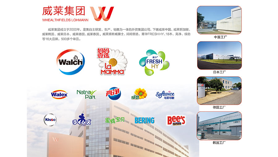 威萊(廣州)日用品有限公司(以下簡稱:威萊)成立于2004年12月17日,是一家集研發(fā)、生產日化產品、洗滌劑、消毒劑及其相關系列產品的國家高新技術企業(yè),同時也是廣東省、廣州市企業(yè)技術中心、廣州市清潔生產優(yōu)秀企業(yè),是國內家居洗滌和消毒產品領域的知名領導企業(yè)之一。威萊公司總部位于廣州,注冊地址為廣州市從化區(qū)明珠工業(yè)區(qū)偉業(yè)路8號,目前在國內外有多個生產基地,主要品牌有威露士、衛(wèi)新、媽媽壹選、18本、亮凈等,共16個品牌及500多個單品,其中威露士消毒液、威露士泡沫抑菌洗手液、衛(wèi)新香薰洗衣液、媽媽壹選天然皂液等知名產品均獲得廣大消費者購買使用,家清品類電商業(yè)績年年增長。2018年,威萊成為日用化學品科學理事會常務理事單位,威露士、媽媽壹選、衛(wèi)新榮獲“億元品牌”稱號。