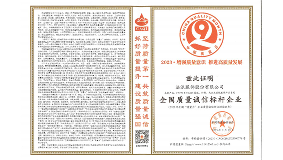 誠信經(jīng)營(yíng)是企業(yè)的道德底線,保證質(zhì)量安全是企業(yè)的責(zé)任。法派決心落實(shí)質(zhì)量誠信的各項(xiàng)承諾,牢固樹立“誠信至上、以質(zhì)取勝”的經(jīng)營(yíng)理念,以誠信鑄品牌,以質(zhì)量求發(fā)展。