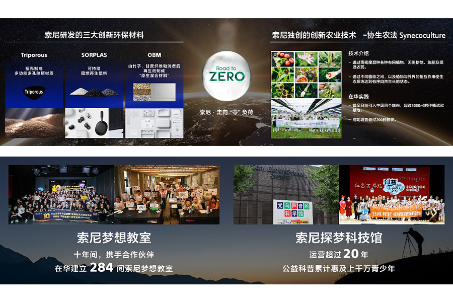 在發(fā)展各項(xiàng)業(yè)務(wù)的同時(shí),索尼矢志不渝履行對(duì)地球的“責(zé)任”,并通過技術(shù)和業(yè)務(wù)為地球做“貢獻(xiàn)”。在“走向零負(fù)荷”的環(huán)境目標(biāo)指導(dǎo)下,在中國,索尼已從2020-2022財(cái)年連續(xù)實(shí)現(xiàn)100%可再生能源用電,并將多樣創(chuàng)新的環(huán)保技術(shù)成果引入中國:包括將多樣植物高密度混種以回歸自然生態(tài)的“協(xié)生農(nóng)法”,索尼獨(dú)自開發(fā)的三大創(chuàng)新環(huán)保材料SORPLARSTM,TriporousTM,OBM等等。