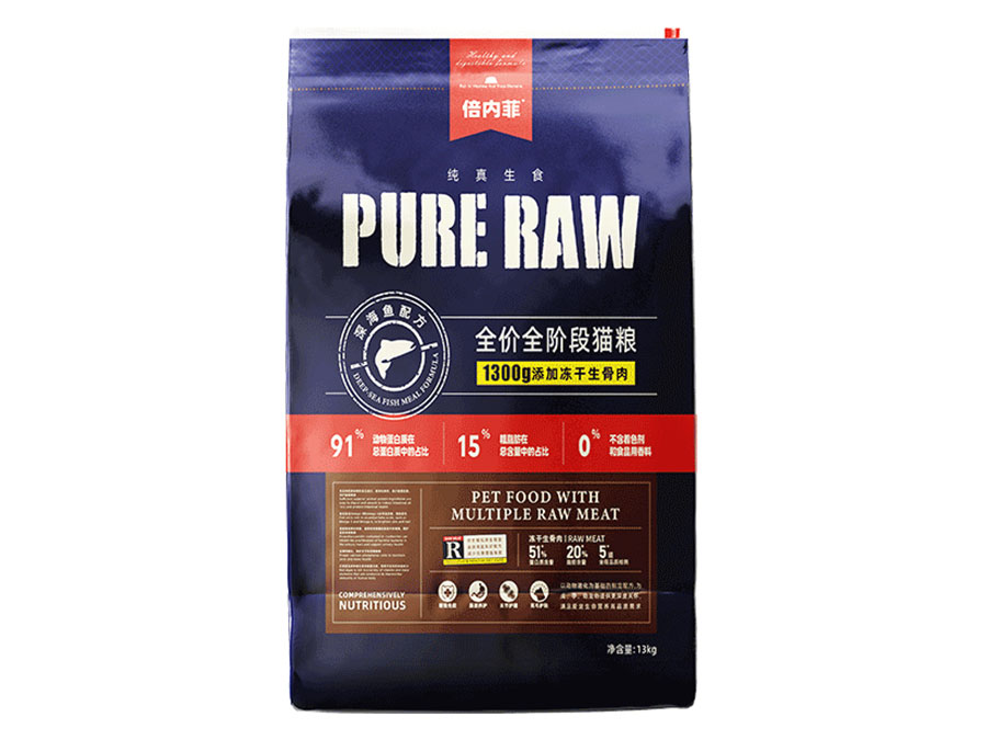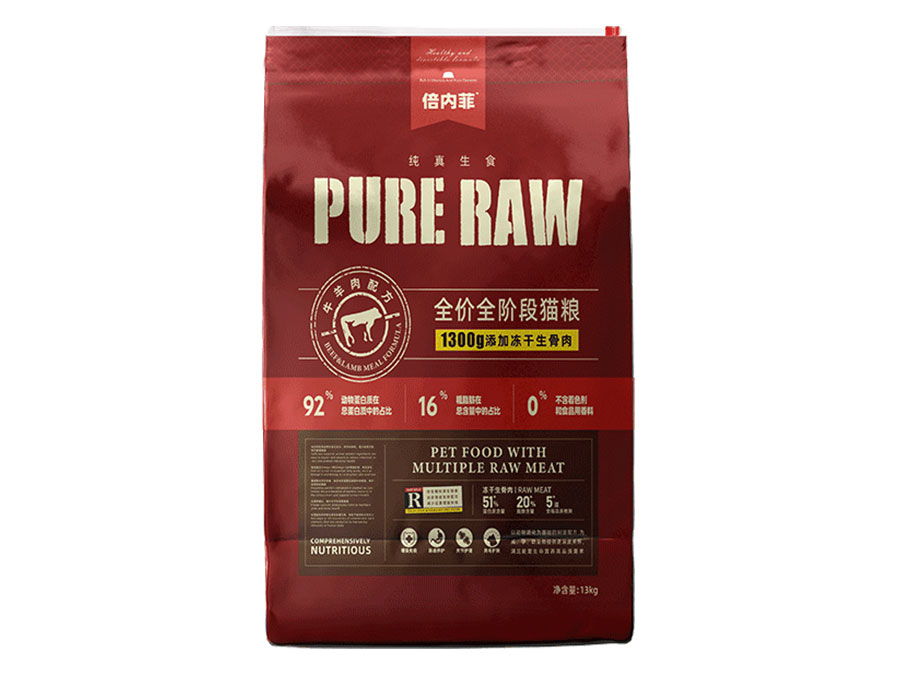 倍內(nèi)菲產(chǎn)品含有高含量的動(dòng)物性蛋白以及盡可能少的碳水化合物,所以選擇純真生鮮飲食的方式,用高蛋白主糧顆粒大搭配鮮肉凍干、生骨肉,用科學(xué)、安全、天然、營(yíng)養(yǎng)、健康的飲食,讓寵物回歸自然天性。
