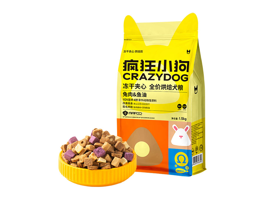 主要產(chǎn)品:瘋狂小狗全價犬糧、寵物零食