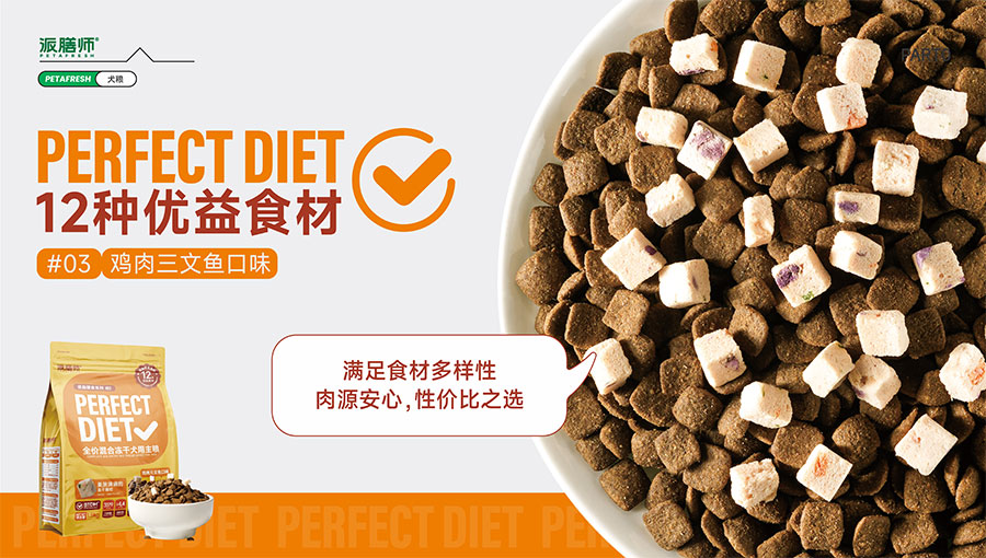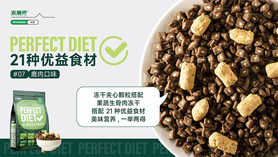 目前派膳師已擁有鮮食、零食、主糧等產(chǎn)品線,主打中高端主糧品類。全新(Perfect Diet)優(yōu)益膳食犬糧系列,倡導(dǎo)飲食多樣性,引入優(yōu)益食材(Superfood)理念,主打食材可見(jiàn)化,為國(guó)內(nèi)狗狗提供更科學(xué)健康的多元化營(yíng)養(yǎng)膳食。