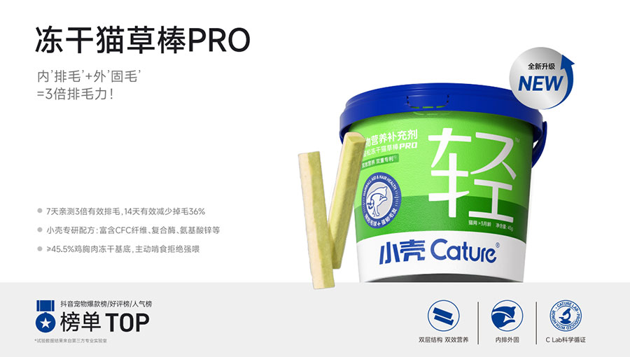 主要產(chǎn)品:小殼絕育定制糧,小殼皮膚毛發(fā)定制糧,小殼免疫呵護定制糧,小殼功能主食罐系列(小殼排毛主食罐,小殼魚油主食罐),小殼小輕松凍干棒系列(小殼貓草棒pro,小殼魚油棒pro)