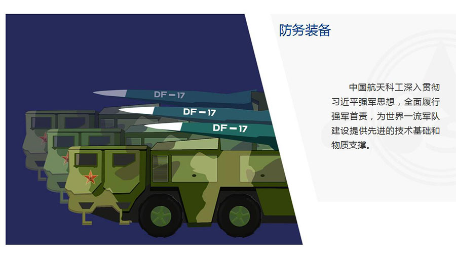 中國航天科工積極適應(yīng)世界軍事發(fā)展趨勢(shì)和我軍軍事斗爭(zhēng)準(zhǔn)備急需,深入貫徹習(xí)近平強(qiáng)軍思想,貫徹新時(shí)代軍事戰(zhàn)略方針,聚焦如期實(shí)現(xiàn)建軍一百年奮斗目標(biāo),著眼復(fù)雜戰(zhàn)場(chǎng)環(huán)境下的作戰(zhàn)需求,加速戰(zhàn)略性、前沿性、顛覆性技術(shù)創(chuàng)新,加速武器裝備升級(jí)換代和智能化武器裝備發(fā)展,推動(dòng)科研生產(chǎn)能力不斷增強(qiáng)、新型導(dǎo)彈武器不斷涌現(xiàn)、裝備科研生產(chǎn)體系更加完整,為人民軍隊(duì)捍衛(wèi)國家主權(quán)、安全、發(fā)展利益提供先進(jìn)的技術(shù)基礎(chǔ)、物質(zhì)保障和強(qiáng)有力的導(dǎo)彈武器裝備戰(zhàn)略支撐。