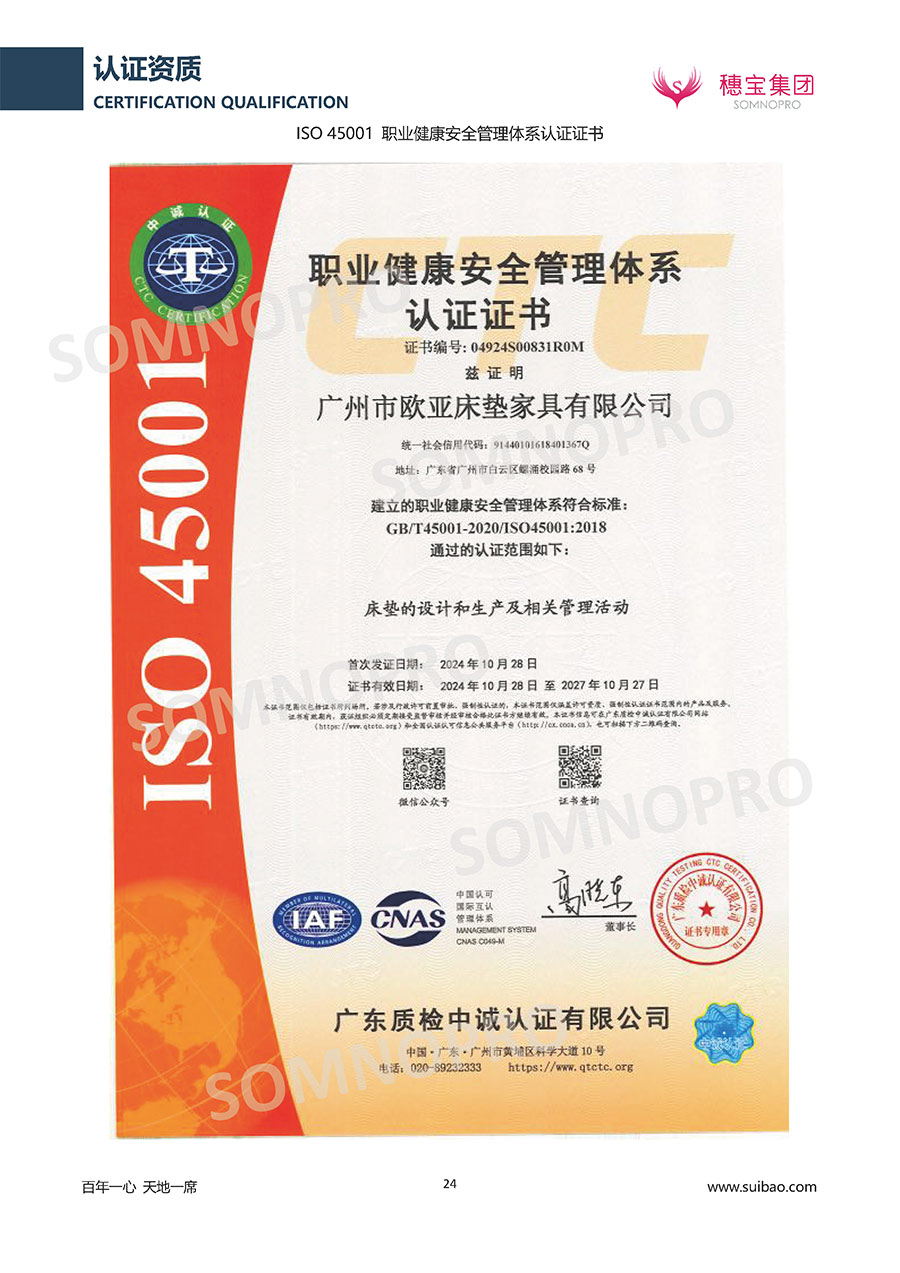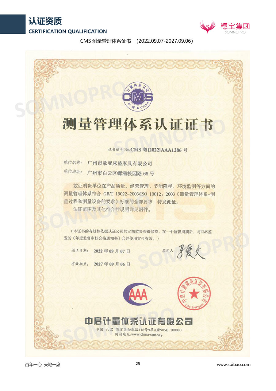 本著高品質(zhì)、高效率、重管理的原則,穗寶已通過ISO9001質(zhì)量管理體系認證證書、ISO14001環(huán)境管理體系認證證書、ISO45001職業(yè)健康安全管理體系認證證書、中國環(huán)境標志產(chǎn)品認證證書、家居綠色環(huán)保領(lǐng)跑品牌、綠色正品家居品牌、企業(yè)標準“綠色領(lǐng)跑者”證書、CMS測量管理體系證書、CMS測量管理體系證書附件、廣東省“守信用重合同”企業(yè)、廣州歐亞-納稅信用A級納稅人(連續(xù)5年:2018-2022)、2024年中國500最具價值品牌,品牌價值高達302.89億元、廣東高價值商標品牌(穗寶)、廣東省重點商標保護名錄納入證明、廣州市勞動關(guān)系和諧企業(yè)AA級。穗寶自創(chuàng)立以來,不斷致力于新產(chǎn)品的設(shè)計與研發(fā),多次在國內(nèi)家具展會屢獲獎項,產(chǎn)品暢銷國內(nèi)外,深受客戶一致好評。