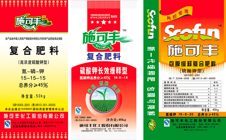 公司主導(dǎo)產(chǎn)品施可豐牌復(fù)合肥是采用國內(nèi)最新工藝配方及檢測標準,選用大量進口原料,利用低溫轉(zhuǎn)化中和噴漿造粒法、氨化造粒法生產(chǎn)的優(yōu)質(zhì)高效肥料,具有濃度高、養(yǎng)分全、易吸收、肥效長、改良土壤、提高果實品質(zhì)和增強作物抗病能力等特點,適用于小麥、水稻、玉米、棉花、大豆、花生、蔬菜、果樹、花卉等,是發(fā)展無公害農(nóng)產(chǎn)品的理想肥料。“施可豐”牌復(fù)合肥被評為“山東名牌產(chǎn)品”“中國農(nóng)民喜愛的農(nóng)資品牌”稱號,“農(nóng)化服務(wù)明星企業(yè)” “中國農(nóng)資行業(yè)最具價值品牌”等榮譽稱號。