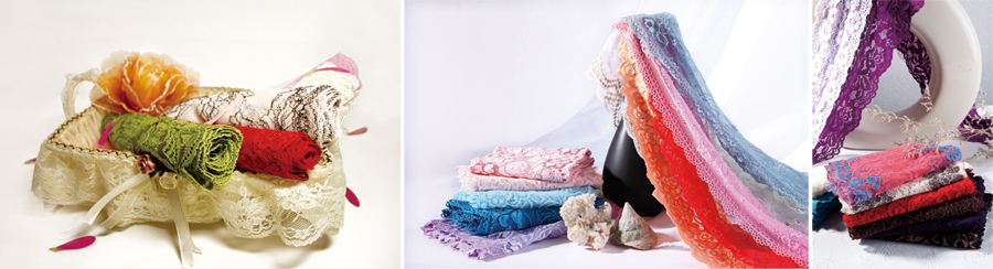 主要產(chǎn)品有高中檔彈性和非彈性花邊、彈性網(wǎng)布、彈性花邊面料、蕾絲等,用于高檔面料裝飾。通過EAT軟件設計系統(tǒng),也可根據(jù)客戶需求進行自主設計開發(fā)各種花型工藝。公司生產(chǎn)的產(chǎn)品花樣獨特、工藝花型美觀大方,所采用原材料及后整理加工全部采用國際環(huán)保要求的原料及染化料,產(chǎn)品完全符合出口要求,產(chǎn)品在國內外占有重要市場,且暢銷歐美、日本、東南亞等國家。