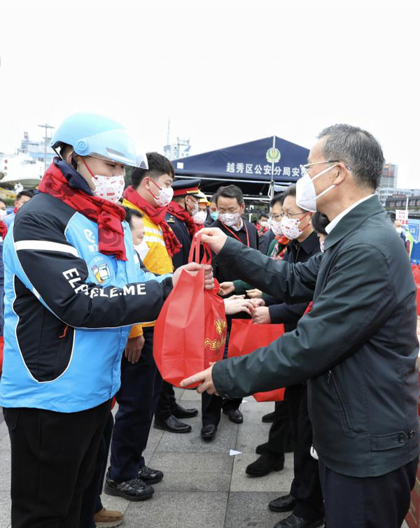 省人大常委會(huì)黨組成員、省總工會(huì)主席呂業(yè)升出席慰問活動(dòng)并向廣大勞動(dòng)者致以親切問候和新春祝福。省總工會(huì)黨組書記、常務(wù)副主席陳偉東,省總工會(huì)黨組成員、副主席杜玲,省總工會(huì)副主席(兼職)、廣州市人大常委會(huì)副主任、市總工會(huì)黨組書記、主席唐航浩等代表廣東工會(huì)向慰問現(xiàn)場(chǎng)的網(wǎng)約配送員、環(huán)衛(wèi)工人、建筑工人以及保障春運(yùn)的保安員、醫(yī)務(wù)人員、公安干警、鐵路客運(yùn)服務(wù)人員等職工代表送上新春慰問大禮包。廣州市總工會(huì)及越秀區(qū)總工會(huì)相關(guān)領(lǐng)導(dǎo)參加了慰問活動(dòng)。