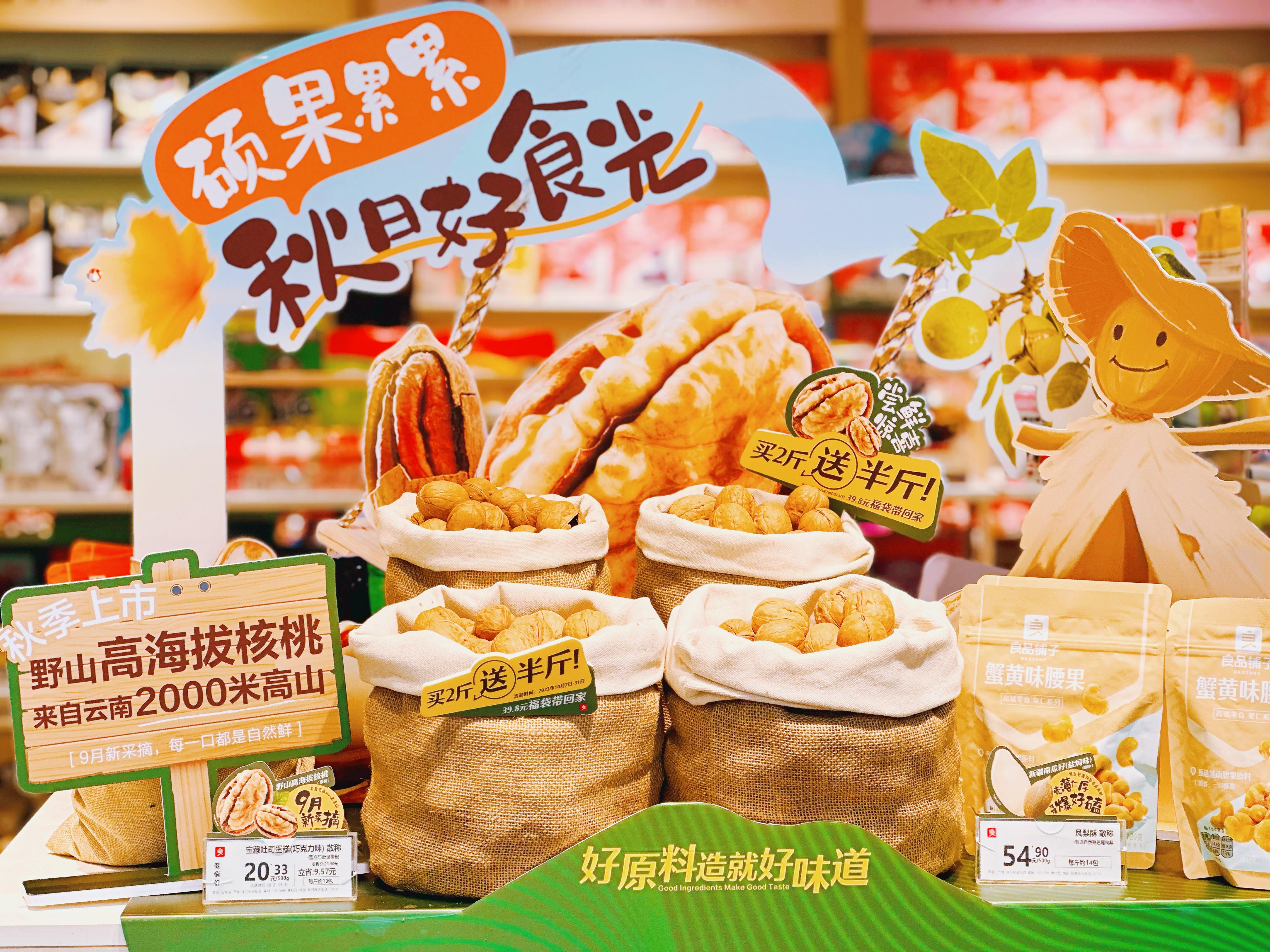 眼下正是堅果類產(chǎn)品上新時節(jié),良品鋪子接連推出堅果新品。香烤紫衣腰果“紫衣白胖子”產(chǎn)品,推出首月門店銷售額突破200萬元,不斷刷新銷售記錄。野山高海拔核桃產(chǎn)品,九月鮮采,十月新烤,上市即有嘗鮮驚喜,推出買2斤送半斤活動。