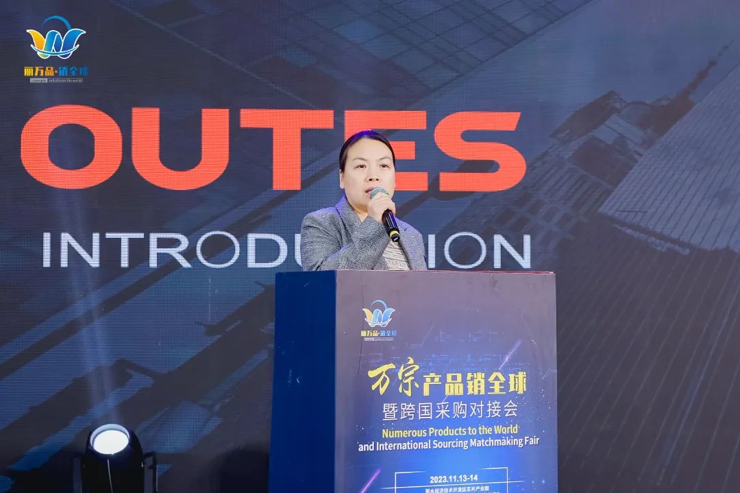 與此同時,中廣電器集團海外營銷中心負(fù)責(zé)人劉麗萍作為麗水經(jīng)開區(qū)企業(yè)代表,在對接會開幕式上作相關(guān)主題分享。她圍繞集團介紹、主營業(yè)務(wù)、產(chǎn)品研發(fā)等多方面內(nèi)容,向來自世界各地的采購商進行全方位的企業(yè)推介。