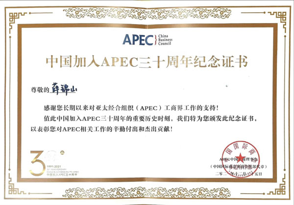 至今已得到逾60國(guó)政要貴賓青睞與認(rèn)可,擔(dān)當(dāng)著傳遞中國(guó)特色大國(guó)外交理念的茶文化使者,薛錦山于2021年獲得中國(guó)加入APEC三十周年紀(jì)念證書(shū),于2022年被授予新時(shí)代中國(guó)經(jīng)濟(jì)創(chuàng)新人物榮譽(yù)稱(chēng)號(hào)。