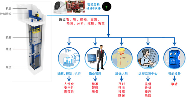 愛登堡人工智能綠色曳引驅(qū)動乘客電梯通過搭載先進傳感器、控制器、執(zhí)行器等裝置,結(jié)合信息通信、互聯(lián)網(wǎng)、大數(shù)據(jù)、云計算、傳感檢測等新技術(shù),具備與人類智能(視覺、聽覺、感知、決策、交互、語言、執(zhí)行)相關(guān)的功能。