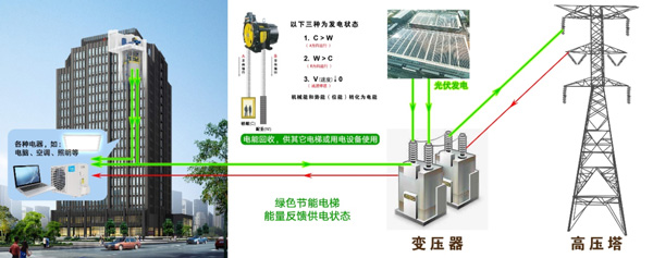 愛登堡自主研發(fā)的集成四象限變頻器,利用上升和下降的不平衡重量將勢能轉(zhuǎn)化為動能和電能發(fā)電,給樓宇的用電設(shè)備使用、減少樓宇設(shè)備向外界獲取的電能。愛登堡綠色電梯節(jié)能減碳技術(shù),降低產(chǎn)品能耗,減少環(huán)境污染,推動社會綠色低碳發(fā)展,為實現(xiàn)碳達峰碳中和做出一份貢獻。
