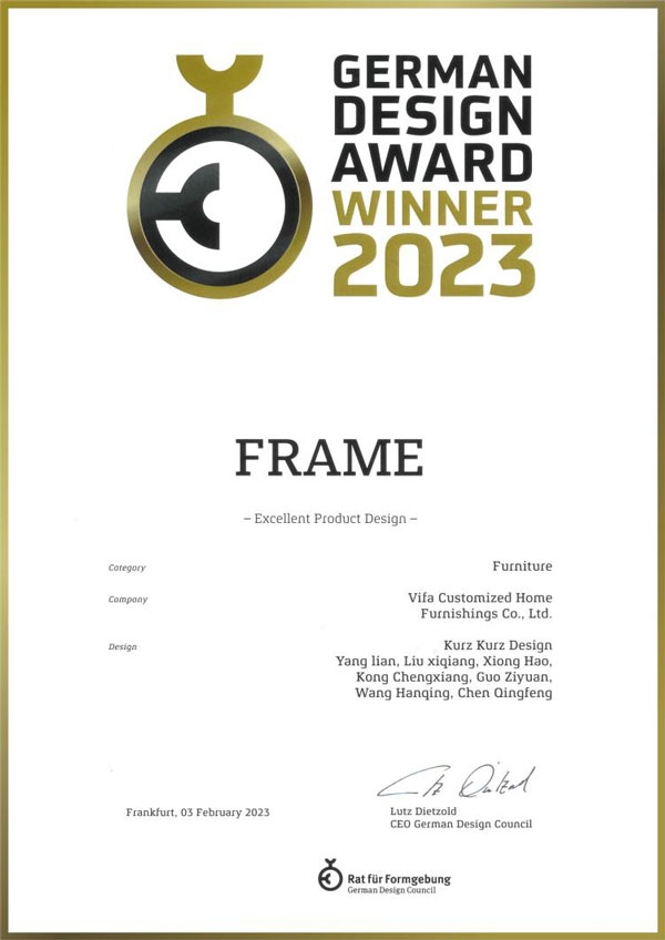 近日,由德國設(shè)計(jì)委員會(huì)主辦的German Design Awards 德國國家設(shè)計(jì)獎(jiǎng)公布了2023年度獲獎(jiǎng)名單,高端家居定制品牌vifa威法的作品FRAME(Alita智能廚廳)榮獲卓越產(chǎn)品設(shè)計(jì)大獎(jiǎng)(Excellent Product Design),這也是世界上最具價(jià)值的設(shè)計(jì)獎(jiǎng)項(xiàng)之一,代表著威法的設(shè)計(jì)能力得到世界設(shè)計(jì)領(lǐng)域的高度贊譽(yù),凸顯威法對(duì)高端生活美學(xué)的卓越引領(lǐng)能力。