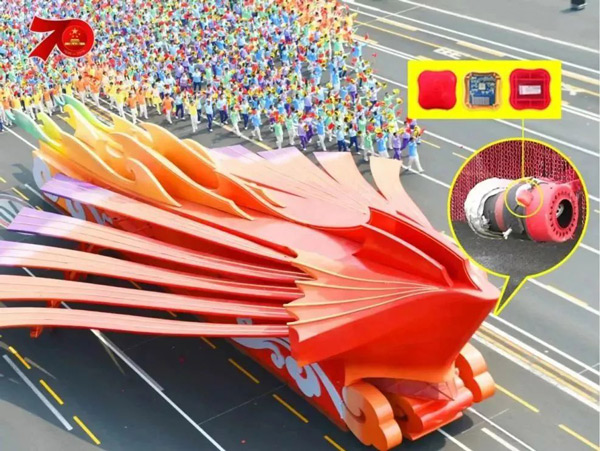 國慶七十周年慶典,群眾游行彩車配置明文利發(fā)®機動車排氣火花熄滅器