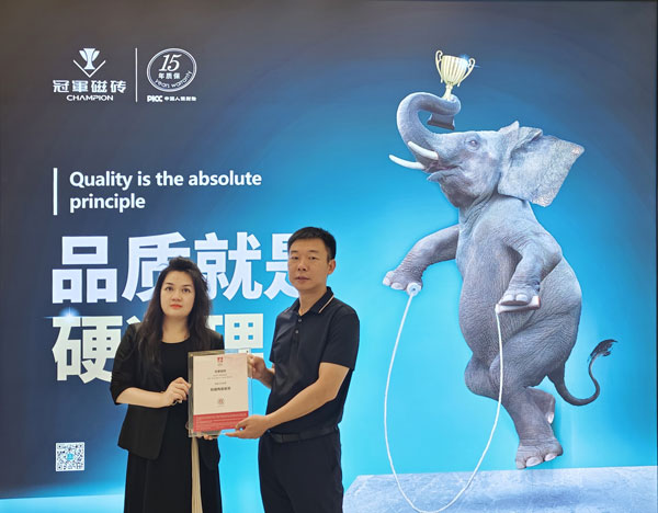 左:冠軍磁磚巖板中心副總經(jīng)理 唐小敏