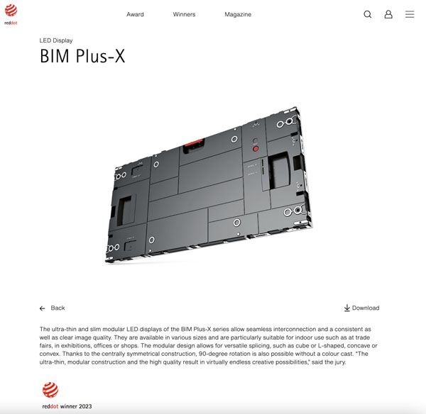 近日,2023年德國(guó)紅點(diǎn)設(shè)計(jì)大獎(jiǎng)名單公布。聯(lián)建光電VAIII系列微間距顯示屏、Pilot Pro系列租賃顯示屏、BIM Plus-X系列室內(nèi)商業(yè)顯示屏三款產(chǎn)品同時(shí)斬獲素有設(shè)計(jì)界“奧斯卡”之稱的紅點(diǎn)設(shè)計(jì)獎(jiǎng),這三款產(chǎn)品凝聚著全球前沿技術(shù)和創(chuàng)新設(shè)計(jì),實(shí)至名歸。據(jù)統(tǒng)計(jì),聯(lián)建光電是2023紅點(diǎn)獎(jiǎng)中獲獎(jiǎng)最多的LED顯示品牌。
