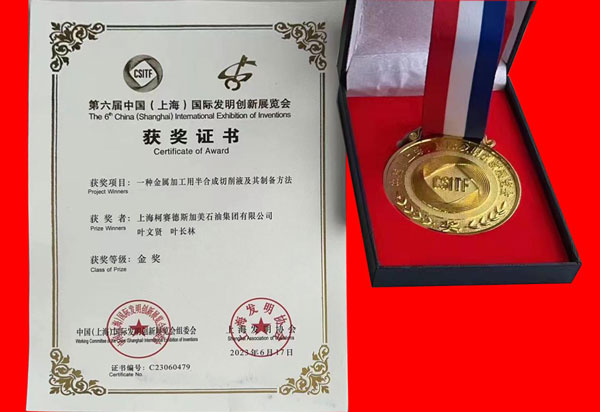 日前,中國(上海)國際發(fā)明創(chuàng)新展覽會(huì)組委會(huì)、上海發(fā)明協(xié)會(huì)主辦“第六屆中國(上海)國際發(fā)明創(chuàng)新展覽會(huì)盛大頒獎(jiǎng)”主題活動(dòng),來自上海柯賽德斯加美石油集團(tuán)有限公司一舉奪得頭籌,由該集團(tuán)公司研發(fā)及工程技術(shù)團(tuán)隊(duì)的骨干聯(lián)手合作的最新發(fā)明創(chuàng)新成果——“一種金屬加工用半合成切削液及其制備方法”,符合環(huán)境友好的發(fā)展趨勢(shì),具備難加工材料高速切削的綠色潤滑與保護(hù)技術(shù),能夠助力碳達(dá)峰的發(fā)展戰(zhàn)略而獲得金獎(jiǎng),受到了業(yè)界的廣泛關(guān)注。
