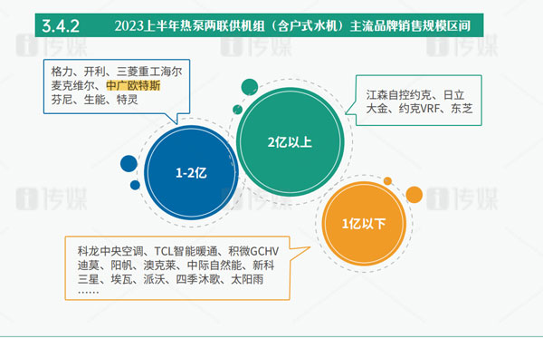 作為“熱泵行業(yè)領(lǐng)軍品牌”的中廣歐特斯,從2018年起逐步轉(zhuǎn)型向暖通與舒適家居領(lǐng)域滲透。經(jīng)過(guò)多年積累,中廣歐特斯在2023年上半年依然保持著逆勢(shì)而上的發(fā)展優(yōu)勢(shì),在主流品牌3億以下銷(xiāo)售規(guī)模中占據(jù)頭部位置。