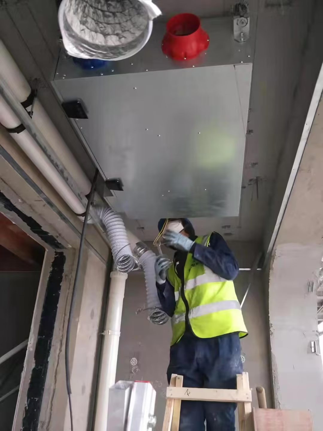 自2021年12月工程進場施工至2023年3月調(diào)試完成第三方驗收通過,整個項目工期歷時15個月。在堅朗上海銷售區(qū)的大力支持下,格蘭斯柯新風(fēng)安裝團隊與世紀(jì)古美項目部緊密配合,精心策劃組織、科學(xué)安排施工。