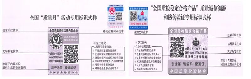 【全國(guó)“質(zhì)量月”活動(dòng)專用標(biāo)識(shí)】具有專屬的知識(shí)產(chǎn)權(quán)(經(jīng)中國(guó)版權(quán)保護(hù)中心審核,國(guó)家版權(quán)局于2015年7月16日對(duì)全國(guó)“質(zhì)量月”活動(dòng)專用標(biāo)識(shí)頒發(fā)了《作品登記證書》,登記號(hào):國(guó)作登字-2015-L-00188457),基本規(guī)格為5cm2,集電話電碼防偽查詢、二維碼在線掃描、微信驗(yàn)證、網(wǎng)站查詢等多種功能于一體,綜合運(yùn)用了紐索幣紋、微縮文字、熒光激發(fā)油墨等多種防偽技術(shù);專用標(biāo)識(shí)加貼在企業(yè)產(chǎn)品或包裝上,消費(fèi)者(用戶)只需要用座機(jī)或手機(jī)電話撥打全國(guó)范圍內(nèi)均不需要加區(qū)號(hào)的特服號(hào)碼95105365或使用手機(jī)掃描二維碼或登陸網(wǎng)站(http://www.12365114.cn)就可直接查詢驗(yàn)證加貼專用標(biāo)識(shí)的產(chǎn)品為第三方質(zhì)量專業(yè)機(jī)構(gòu)權(quán)威證明的全國(guó)質(zhì)量誠(chéng)信優(yōu)秀典型企業(yè)生產(chǎn)(銷售)的質(zhì)量誠(chéng)信安全可靠好產(chǎn)品,形成企業(yè)自己獨(dú)有的比較優(yōu)勢(shì)。