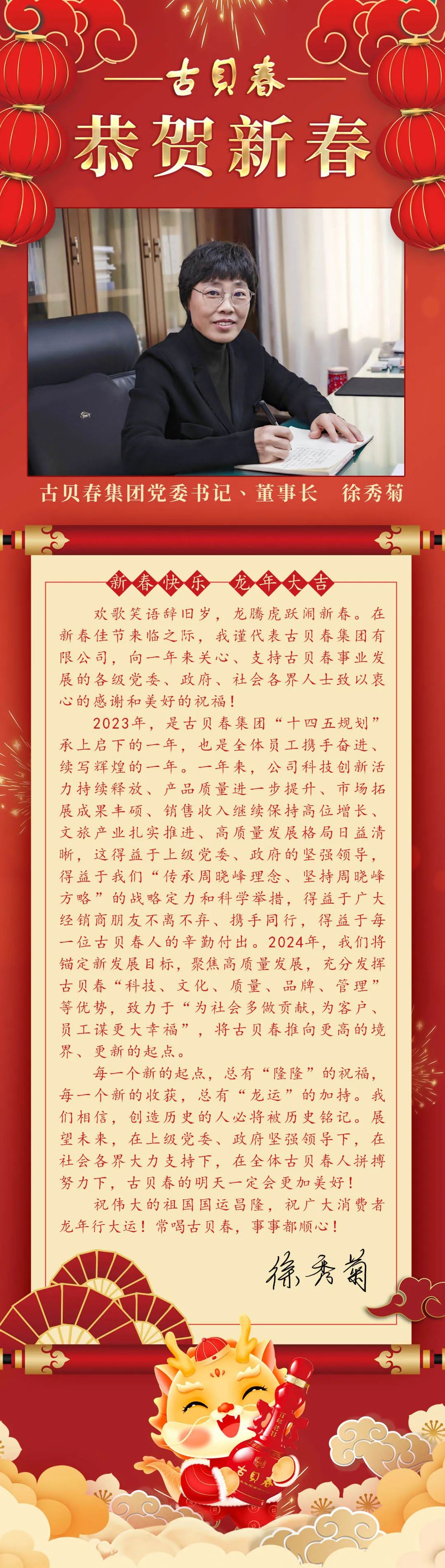 古貝春集團有限公司黨委書記、董事長徐秀菊攜全體員工恭祝全國人民新春快樂!