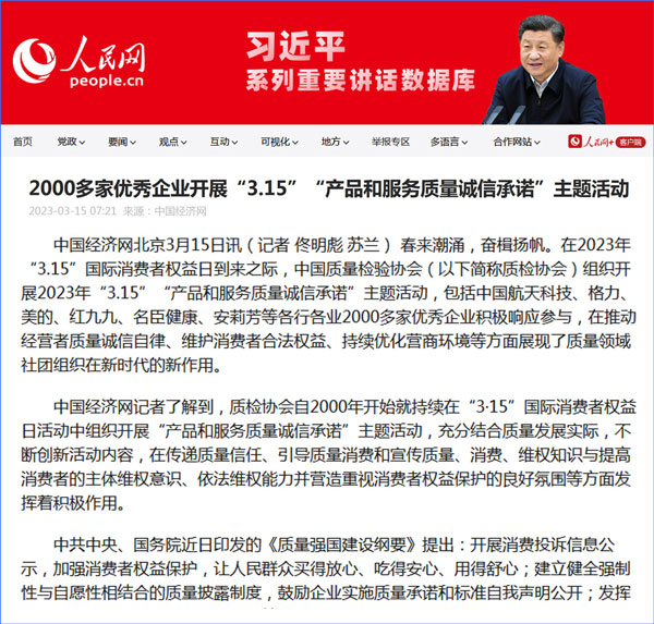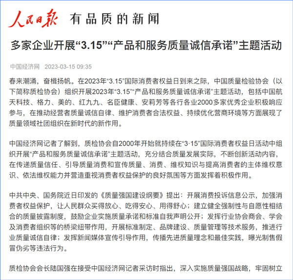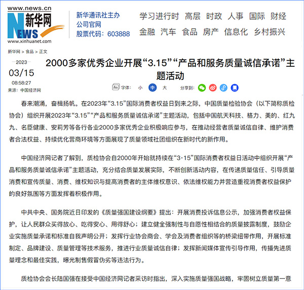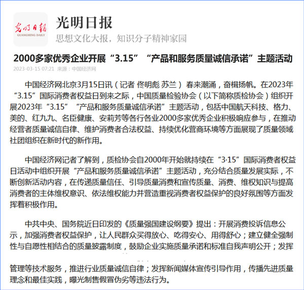 中國質量報:凝心聚力譜寫引導質量消費新篇章——中國質檢協(xié)會組織兩千多家企業(yè)開展“產(chǎn)品和服務質量誠信承諾”主題活動