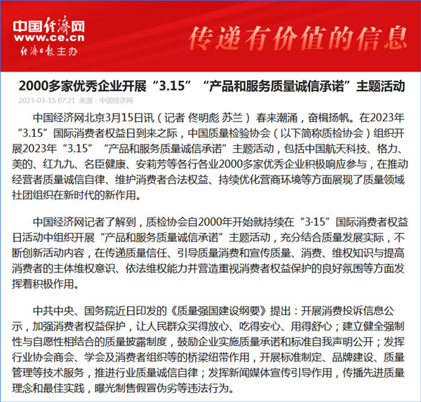 - 中國經(jīng)濟網(wǎng)發(fā)布:質量誠信承諾 助力提振消費——中國質量檢驗協(xié)會組織2000余家優(yōu)秀企…(2026-03-13)