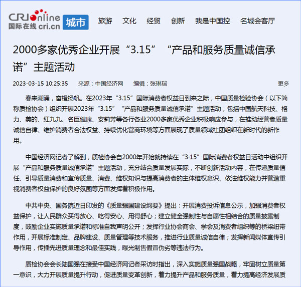 ——中國質量檢驗協(xié)會組織2000余家優(yōu)秀典范企業(yè)開展“產(chǎn)品和服務質量誠信承諾”主題活動