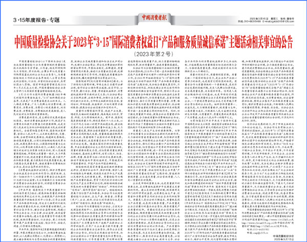 - 中國質(zhì)量報發(fā)布:聚民心 出實招 強(qiáng)共治——中國質(zhì)量檢驗協(xié)會組織開展“3?15產(chǎn)品和服…(2026-03-13)