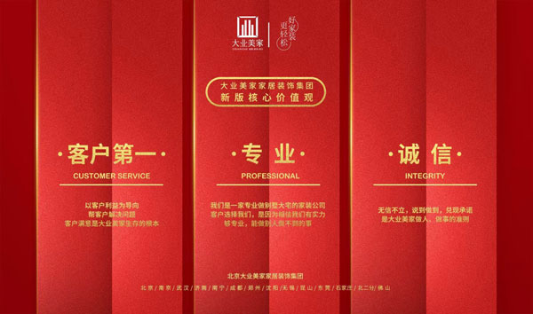 第四點是從2014年到2021年,每年我們都會獲得大量獎項,其中包括施工質(zhì)量類、室內(nèi)設(shè)計類、客戶服務(wù)類、公司品牌類、綠色環(huán)保類,說明我們在這五個方面做得很扎實,而且在每個我們進駐的城市也都獲得到了行業(yè)的尊重,這是因為我們始終秉承“客戶第一、專業(yè)、誠信”的價值觀,大業(yè)美家的每個人都是以這種價值觀作為行為準則,做人扎實靠譜。