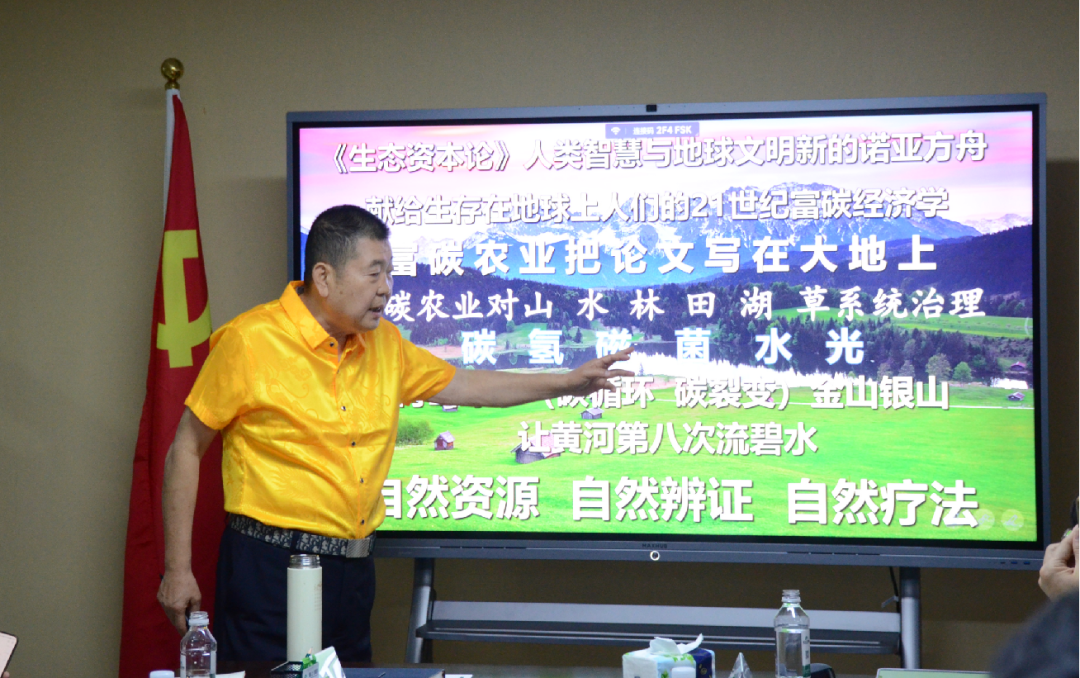 在交流會(huì)上,袁東來(lái)教授以《富碳農(nóng)業(yè)“碳”索未來(lái)》為題進(jìn)行專題授課,介紹了碳中和、富碳農(nóng)業(yè)及其發(fā)展創(chuàng)新理念等相關(guān)理論知識(shí),對(duì)國(guó)際國(guó)內(nèi)相關(guān)實(shí)踐經(jīng)驗(yàn)進(jìn)行了講解,深入闡釋了碳中和與地區(qū)高質(zhì)量發(fā)展的關(guān)系并就富碳農(nóng)業(yè)的發(fā)展與展望、“雙碳”背景下農(nóng)業(yè)產(chǎn)業(yè)的綠色轉(zhuǎn)型等問題進(jìn)行了分析與解讀。集團(tuán)董事長(zhǎng)黃慶明、集團(tuán)監(jiān)事長(zhǎng)云恒寧、集團(tuán)顧問團(tuán)隊(duì)劉錦超教授、柏威廉教授、吳俁達(dá)教授及全體管理人員參加了此次交流。