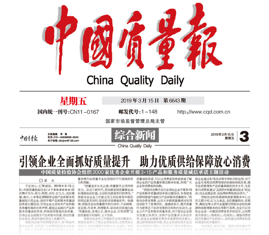 (備注:本新聞刊發(fā)于《中國質量報》2019年3月15日刊第03版)
