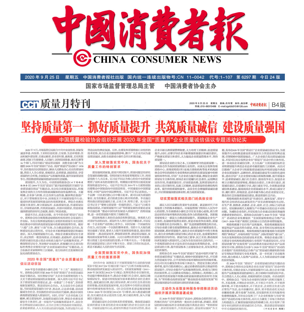 中國消費者報:堅持質量第一 抓好質量提升 共筑質量誠信 建設質量強國——中國質量檢驗協會組織開展2020年全國“質量月”企業(yè)質量誠信倡議專題活動紀實
