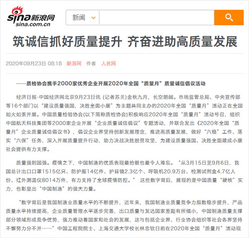 新浪網:筑誠信抓好質量提升 齊奮進助高質量發(fā)展——質檢協會攜手2000家優(yōu)秀企業(yè)開展2020年全國“質量月”質量誠信倡議活動