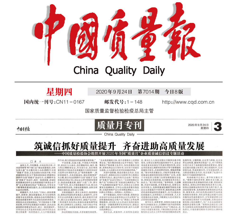 中國質量報:筑誠信抓好質量提升 齊奮進助高質量發(fā)展——中國質量檢驗協會組織開展2020年全國“質量月”企業(yè)質量誠信倡議專題活動