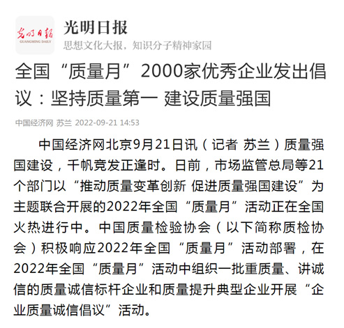 光明網(wǎng):2022年全國“質(zhì)量月”開展企業(yè)質(zhì)量誠信倡議活動(dòng)