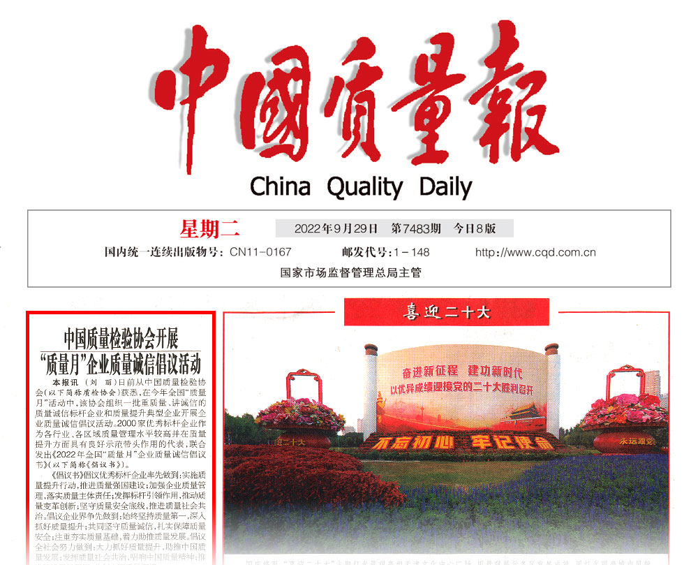 中國質(zhì)量報(bào):中國質(zhì)量檢驗(yàn)協(xié)會(huì)開展“質(zhì)量月”企業(yè)質(zhì)量誠信倡議活動(dòng)
