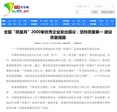 中國青年網(wǎng):全國“質(zhì)量月”2000家優(yōu)秀企業(yè)發(fā)出倡議:堅(jiān)持質(zhì)量第一 建設(shè)質(zhì)量強(qiáng)國