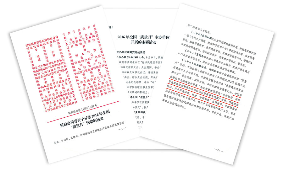 提高供給質(zhì)量是供給側(cè)結(jié)構(gòu)性改革的主攻方向,全面提高產(chǎn)品和服務(wù)質(zhì)量是提升供給體系的中心任務(wù)。為了堅(jiān)持以質(zhì)量第一為價(jià)值導(dǎo)向,下最大氣力抓全面提高質(zhì)量,推動我國經(jīng)濟(jì)發(fā)展進(jìn)入質(zhì)量時(shí)代,國家質(zhì)檢總局、中共中央宣傳部、國家發(fā)改委、工業(yè)和信息化部、中央軍委裝備發(fā)展部、中華全國工商業(yè)聯(lián)合會等47個(gè)2017年全國“質(zhì)量月”活動主辦單位在《2017年全國“質(zhì)量月”活動主辦單位開展的主要活動》中部署安排中國質(zhì)量檢驗(yàn)協(xié)會:繼續(xù)組織開展“企業(yè)質(zhì)量誠信倡議”專題活動,開展質(zhì)量誠信溯源和防偽標(biāo)識應(yīng)用服務(wù)專項(xiàng)推廣活動。同時(shí),2017年全國“質(zhì)量月”活動還將中國質(zhì)量檢驗(yàn)協(xié)會工作核心價(jià)值“傳遞質(zhì)檢信任 引導(dǎo)質(zhì)量消費(fèi)”及2017年全國“質(zhì)量月”企業(yè)質(zhì)量誠信倡議專題活動的主題“弘揚(yáng)工匠精神,堅(jiān)持質(zhì)量第一”列為《2017年全國“質(zhì)量月”活動口號》。