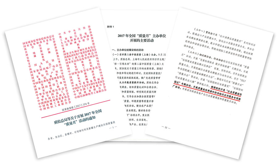 2017年9月12日,《中共中央 國務(wù)院關(guān)于開展質(zhì)量提升行動的指導(dǎo)意見》全文發(fā)布。這是黨中央、國務(wù)院首次出臺的質(zhì)量工作綱領(lǐng)性文件,在我國質(zhì)量發(fā)展進(jìn)程中具有里程碑意義,必將對我國質(zhì)量發(fā)展產(chǎn)生深遠(yuǎn)影響。